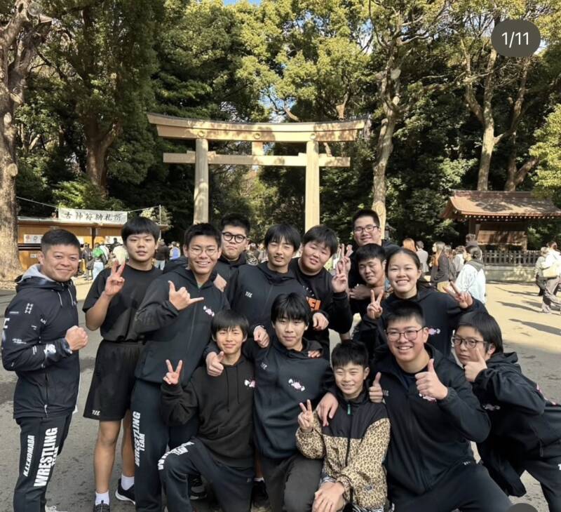 日駒レスリング部は年明けの初練習に明治神宮まで往復するという元旦マラソンでスタートします。片道約4キロ、往復8キロを完走します。今年は晴天に恵まれ、すがすがしいマラソン日和となりました。抱負を述べて気持ちを新たにし、本年も部員、顧問一同頑張ります。応援よろしくお願いいたします。